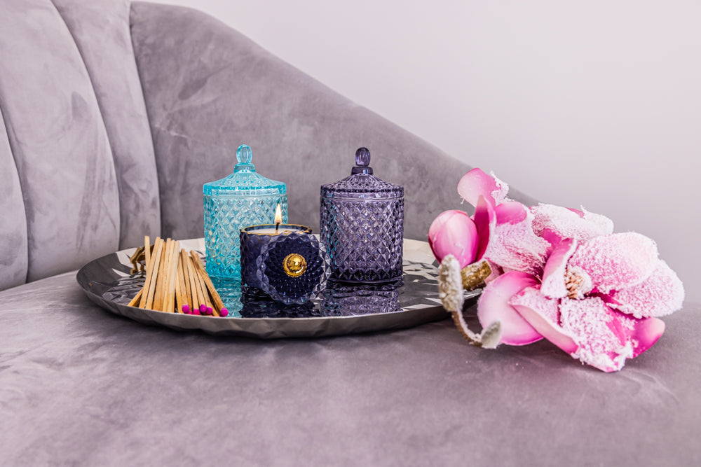 Candela in contenitore vetro, collezione Gioielli